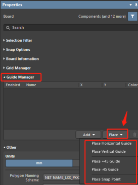 在Guide Manager選項(xiàng)組中單擊Place下拉列表,根據(jù)需要放置參考線。