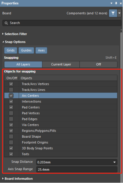 在PCB設(shè)計(jì)時精度要求較高,需要使用不同的捕捉對象和不同的捕捉距離,在Altium Designer中提供了多種的光標(biāo)捕捉。