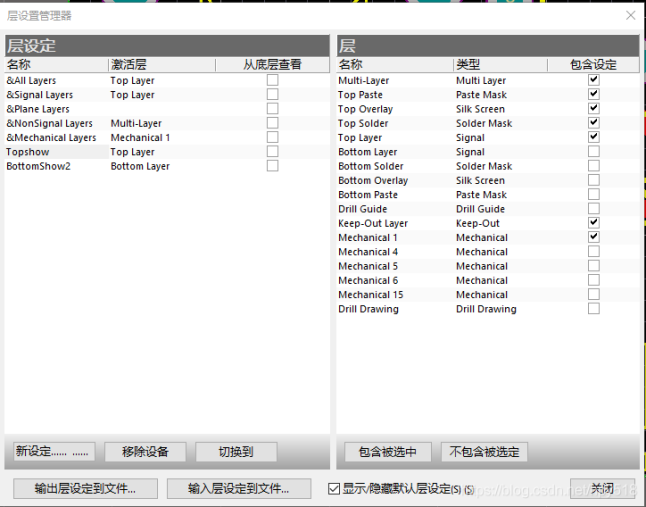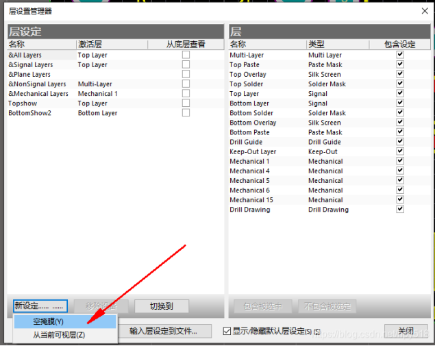 新建個名字,如topshow,然后在右邊勾選上需要顯示的層。像下面這樣,就是顯示頂層所有需要的層。
