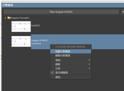 以原理圖為例,點擊右下角【Panels】,選擇【片段摘錄】,打開“片段摘錄”對話框,在這里,可以對片段摘錄文件夾保存路徑進行編輯,也可以對目前在使用的片段摘錄文件夾進行管理。