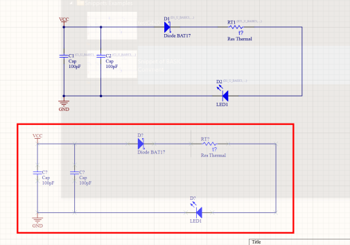 通過【放置片段摘錄】指令,就可以將這部分電路直接調(diào)用到原理圖上。