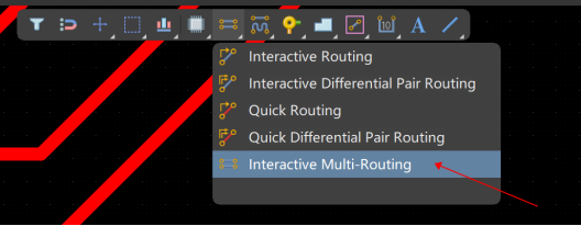 2. 鼠標右擊交互式布線圖標,選中Interactive Multi-Routing