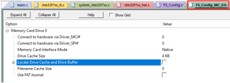 FS_Config_xxx_n.h:每個驅動器或媒體(MC、NAND、NOR、RAM或USB記憶棒)的特性配置文件。
