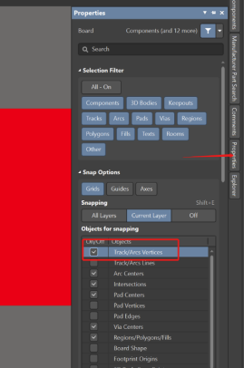 1. 在PCB編輯界面下,打開屬性對話框,將圖中選項勾上,不然會無法捕捉到線上的點