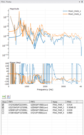 2. FRAC(頻響加速度)可以在兩個計算FRF (頻響力)之間或計算和實驗FRF (頻響力)之間計算。