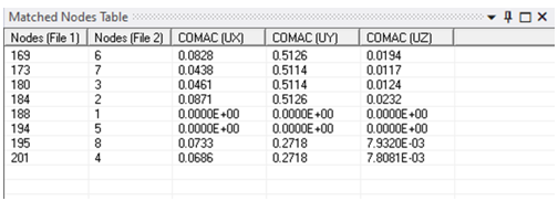 1. 坐標(biāo)模態(tài)保證標(biāo)準(zhǔn) (COMAC) 已添加為 MAC 的附加輸出。計(jì)算每對匹配的自由度