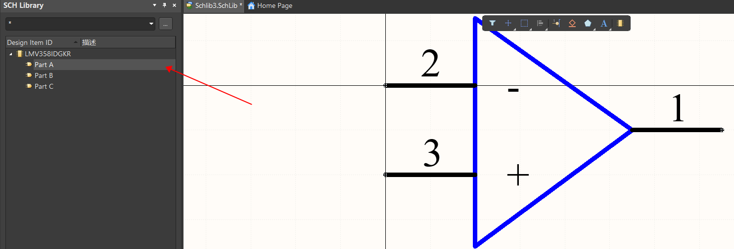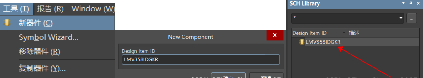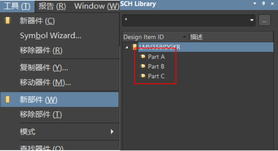 2. 在菜單欄下“工具”→“新部件”,給元器件新建三個(gè)部件。