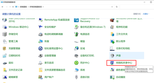 1. 打開控制面板,打開網(wǎng)絡(luò)和共享中心