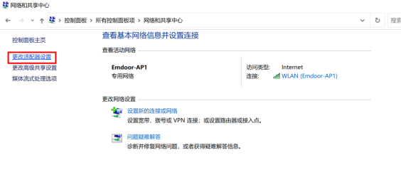 2. 選擇打開更改適配器設(shè)置