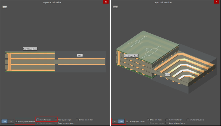 將選項框勾選。可以進行2D和3D模式的切換,對層棧情況進行預覽。