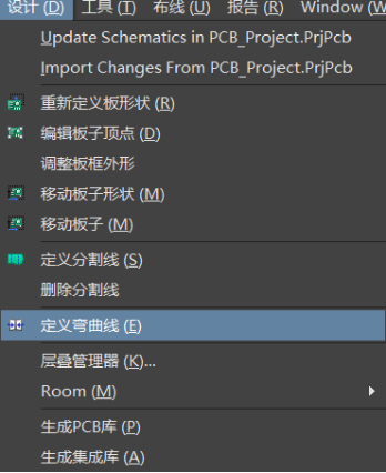 想要實現多個彎曲,在板子規劃模式下,添加設計菜單欄下的定義彎曲線放置。
