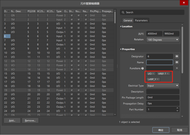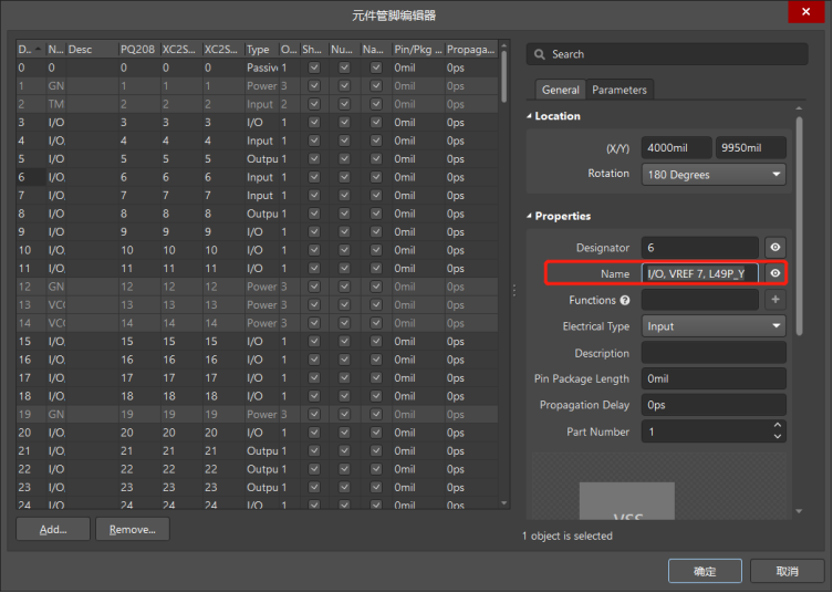 在管腳Name下拉框中選擇管腳的功能。