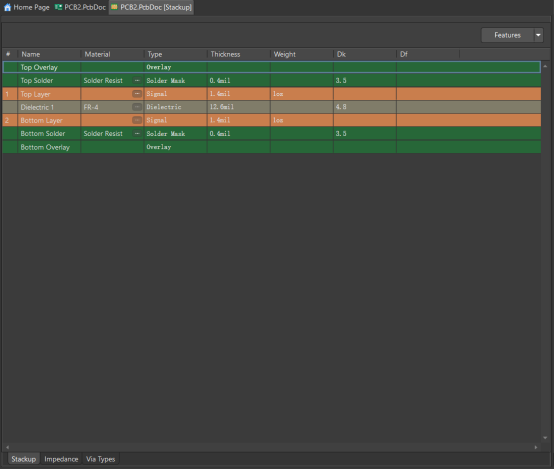 在PCB界面下使用快捷鍵DK進(jìn)入層疊管理器。
