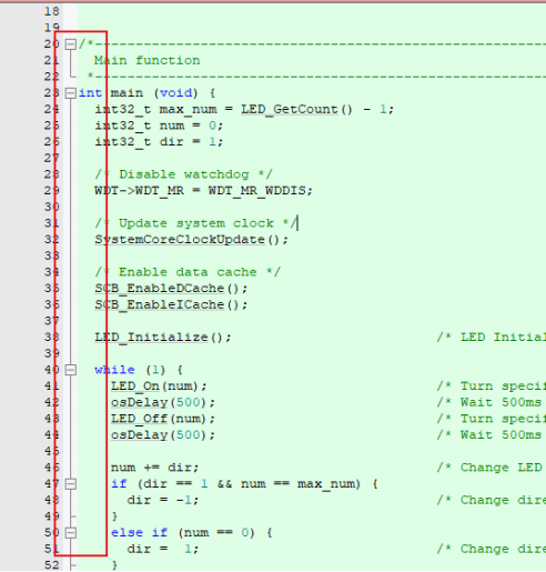 Keil的文件顯示視圖中,左邊可以看到圖中的工程文件的一個大綱提示,這樣就可以看到工程文件的整體的大綱流程和主要的內容。