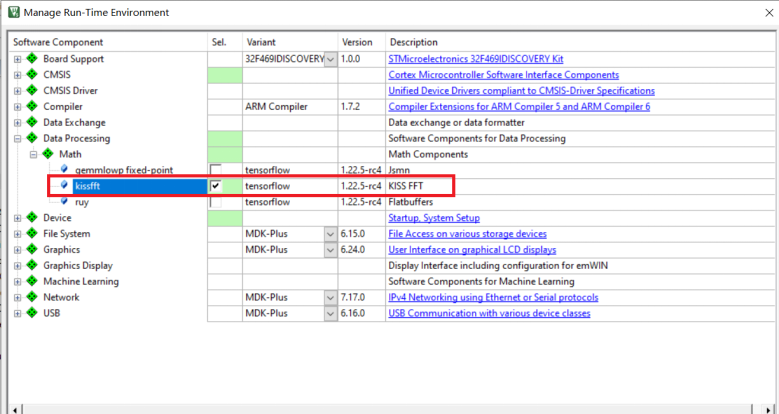 2.勾選kissfft,單擊OK按鈕退出對話框。
