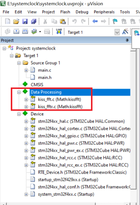 3.軟件已經將kissfft庫添加到項目種,Build一下,需要調用時,只需要添加頭文件#include “kiss_fft.h”即可。