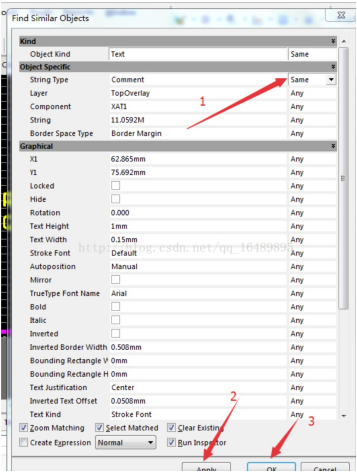 2.此時剛才點的那個元件的數值將會顯示出來,單擊數值,右擊顯示查找相似事物(顯示出來的第一個),出現如下界面,按照步驟設置,把第1步設置為same,點擊apply,點擊OK。