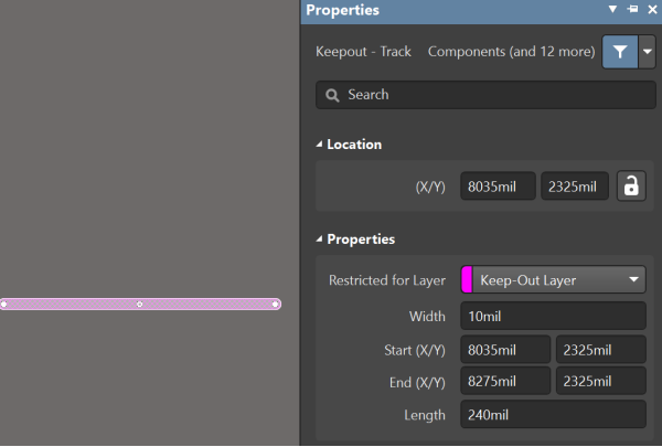 從AD21開始,Keepout的使用和之前版本相比,做了改變,AD將Keepout作為不同于信號層和機械層的一個元素存在,所以不能像之前版本那樣,把PCB上畫的線(Track)通過層的切換直接變更到Keepout層。