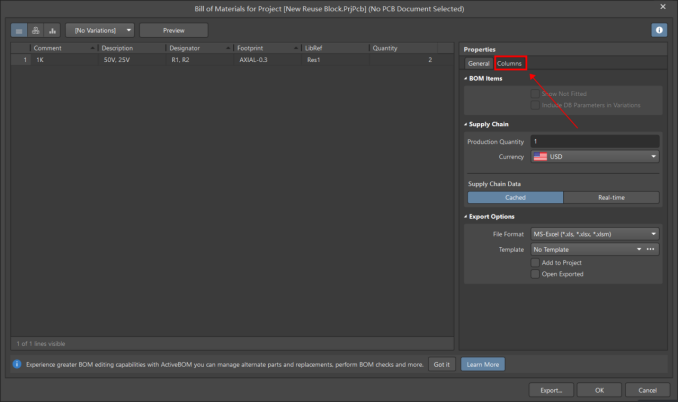 在BOM中點擊【Columns】;