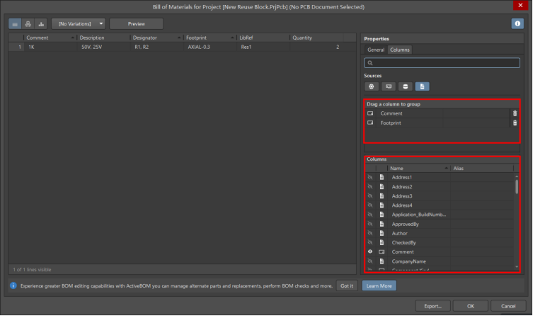【Altium】BOM中添加信息篩選項-2022