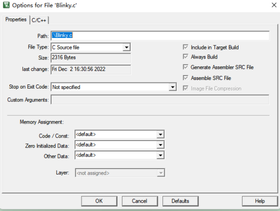 選中文件后右鍵打開菜單,選中Options for File ‘file_name.x’進入到文件的配置窗口。