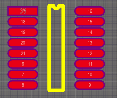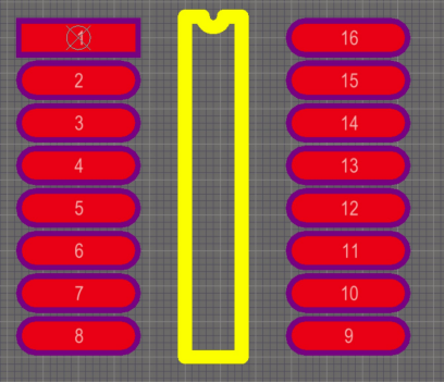 原理圖管腳號是1到16,可我們看了一下U1的封裝,他的管腳號不是1到16