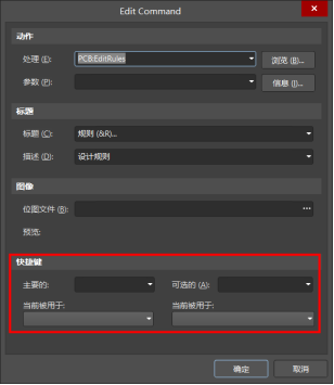 先按下Ctrl鍵不松,鼠標左鍵單擊【規則】,彈出了【Edit Command】對話框,可在快捷鍵下添加自定義選項。