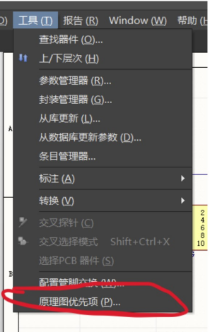 選擇工具下拉菜單中的原理圖優先項
