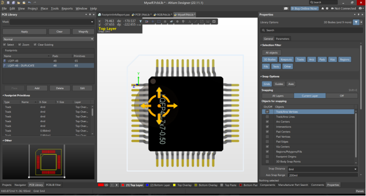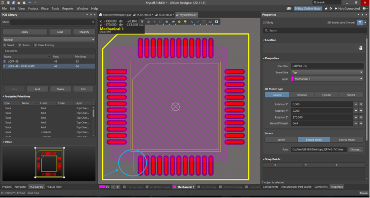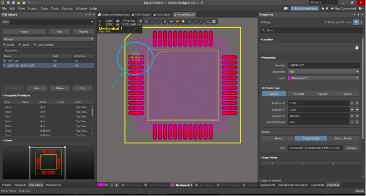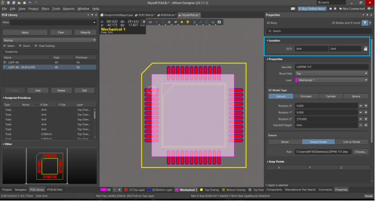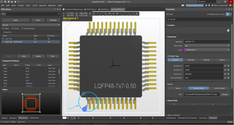 可以看到該封裝的3D模型就快速放置成功,不用再進行手工對齊等不必要的操作步驟。