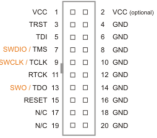 2 ?推薦使用標準JTAG(圖2 10pin/20pin)進行調(diào)試,當使用四線SWD接口進行調(diào)試時,會有一定概率出現(xiàn)這種故障情況。