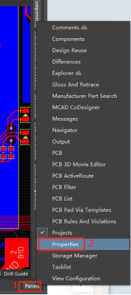 2. 點擊右下角“Panels”,之后在彈出的菜單中勾選“Properties”。