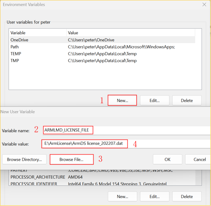 ARMLMD_LICENSE_FILE=license 文件路徑,如: