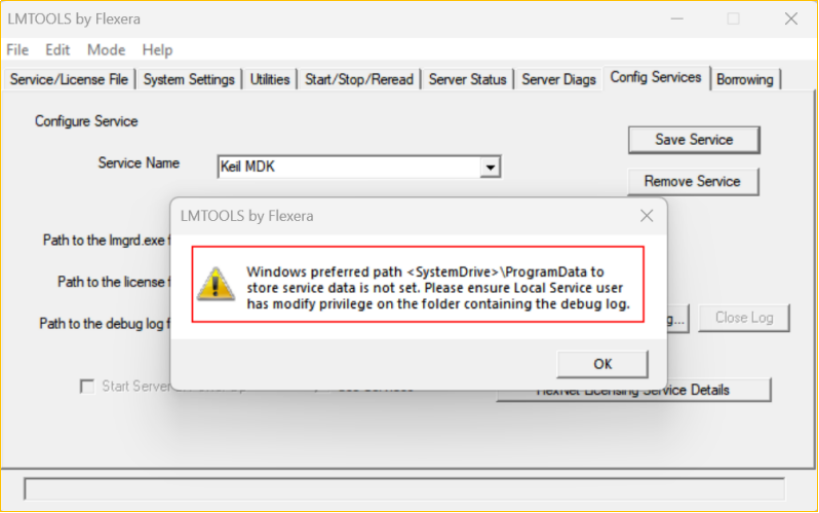 在配置Flexnet服務,保存服務時,會彈出如下的報錯信息: