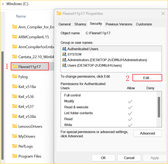 1)打開Flexnet服務所在目錄的屬性窗體,點擊“Edit”。