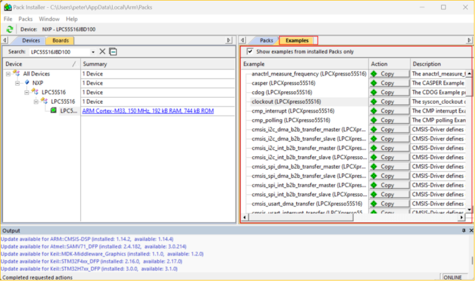 解決Keil MDK中NXP LPC55S16JBD100的PACK包不帶實例的問題