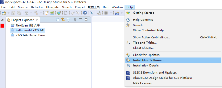 1 在S32 Design Studio的help下拉菜單中選擇Install New Software