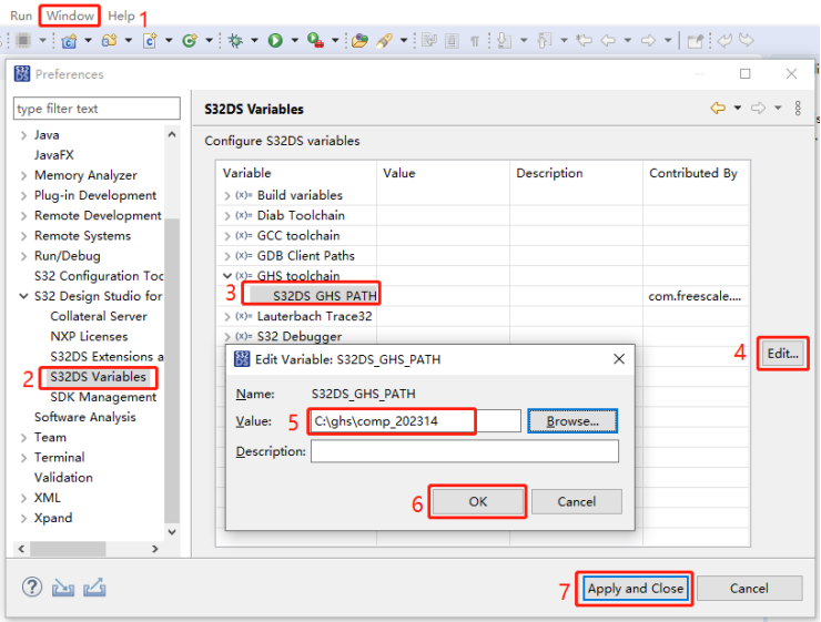 "S32DS Variables"設(shè)置 S32DS_GHS_PATH 這個(gè)變量 (例如" C:ghscomp_202314").