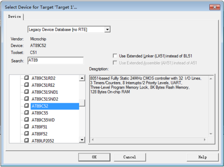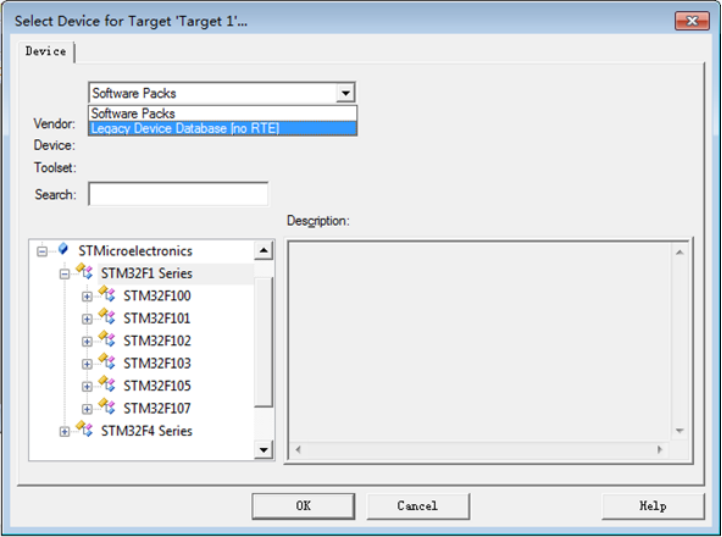 3? 這時候在打開Keil μVision新建項目的時候,就可以在器件中選擇“Legacy Device Database”。