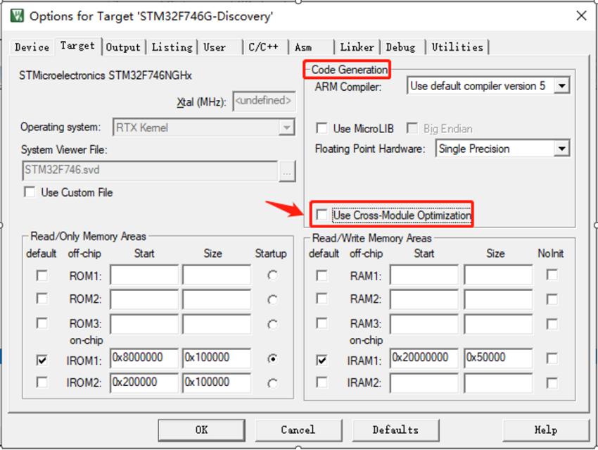 5“Use Cross-Module Optimization”是使用跨模塊優化,它會自動執行多次編譯和鏈接步驟來生成優化的代碼,因此編譯時間就會增加。