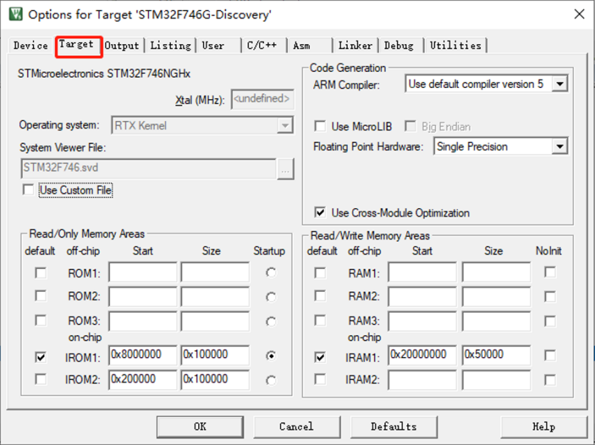 2?在“Options for Target”界面中選擇“Target”標簽。